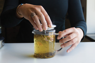Our simple brew teapot is a great way to enjoy loose leaf tea at home or the office every day. The glass brew pot allows you to watch your favorite teas infuse and expand. It is made from sturdy borosiliate glass, making it resistant to breaking, even with drastic swings in temperature and a food-safe stainless steel lid that is easy to take apart for a deeper cleaning. It’s dishwasher safe and works well for any kind of loose leaf tea, especially our finer-cut botanicals.