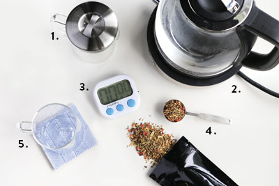Boil water with an electric kettle, or draw hot water from a dispenser. Cool the water to appropriate brewing temperature. You can find the recommend water temperature on the packaging for most of our teas. Otherwise, it is also available on the product’s page on our website.