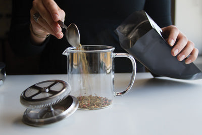 Add 1 rounded tablespoon of tea to a clean, dry Simple Brew for an 8oz cup of tea.