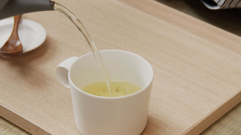 Bring water to a boil then add to your empty teacup and allow to cool to 170°F. Boiling the water before brewing purifies the water and can help remove any chlorine or other adverse flavors.
