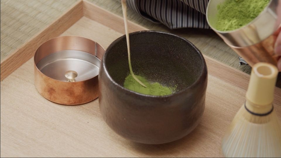 Add approximately 1 teaspoon (2 grams) of matcha to the tea bowl (chawan), using a tea scoop (chashaku)