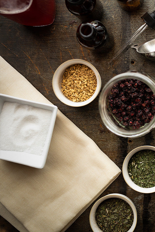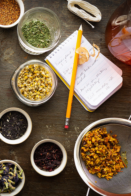 A simple definition of decoction would be a simmered herbal tea. Decoctions are often best for harder botanicals like roots or seeds that are not as readily infused by steeping in a teapot. A solid standard ratio of plant matter to water is 1oz herbs to 32 oz water.