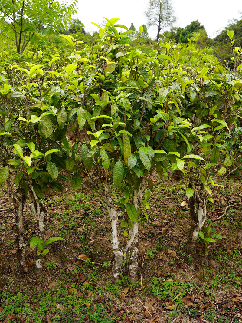 Sheng Pu’er tea is made from sun-dried green tea using the Sun’s light and energy to finally dry the tea. This natural drying method predates the modern and more widespread practice of oven drying tea. The sunlight and slow rate of natural drying creates a uniquely sweet and subtle fermentation taste and aromatic profile that only the Sun’s natural UV light can coax from the tea leaves. Sun-dried green tea is then steamed and pressed into cake forms according to Pu’er tea traditions for enjoyment and collection. This lot of 200 cakes is from a Wa ethnic people’s village in Cangyuan on the border of Lincang, Yunnan and Burma. The local people established a large plantation in 1903 by planting the seeds from ancient trees from the surrounding forests. The teas here are fruity and bittersweet with notes of resinous woods and olive leaves. The tea soup density is thick and a bit oily with multi-florals. Yunnan tea experts we traveled with in this area mentioned this old tea plantation is related to the Mengku Da Ye Zhong type of broad leaf assamica tea which is one of Lincang Prefecture’s high-performance cultivars.