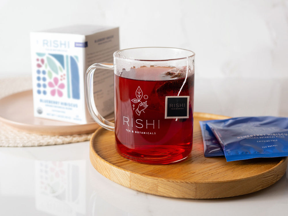 An elegantly simple blend of juicy hibiscus, rich red rooibos and sumptuous elderberries creates a wondrous botanical backdrop to highlight the refreshment of real blueberries. Hibiscus is prized throughout the tropics for its quenching sweet-tart flavor and replenishing effect. A touch of adaptogenic schisandra berries adds bright floral notes. Elderberries, commonly enjoyed to soothe coughs and colds, perfectly complement the luscious, fresh-picked-pint-of-blueberries aroma of this fruity blend. Blueberry Hibiscus is utterly delicious, both hot and iced.