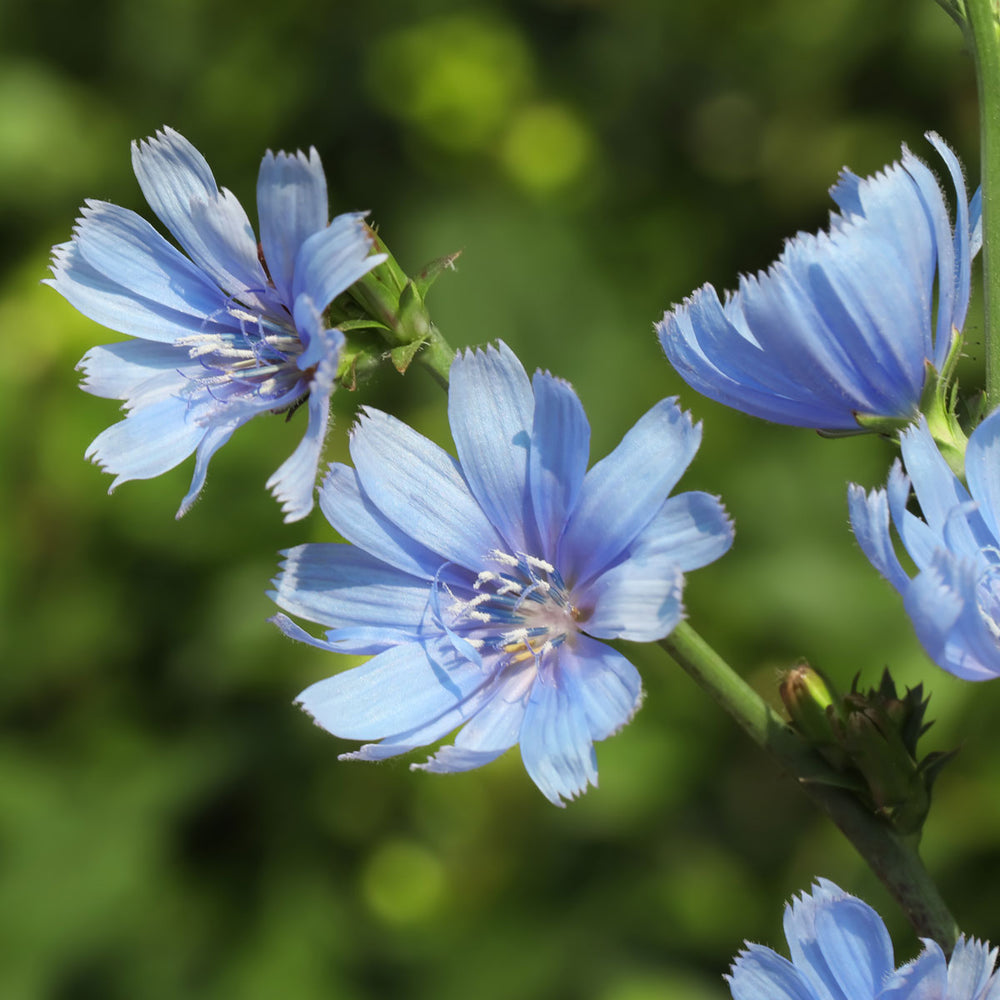 Chicory (Cichorium intybus) is a leafy green vegetable whose roots, leaves, and flowers are used in herbal preparations. The root is often roasted, ground and used as a food or beverage ingredient for its robust, earthy flavor and mild bitterness.