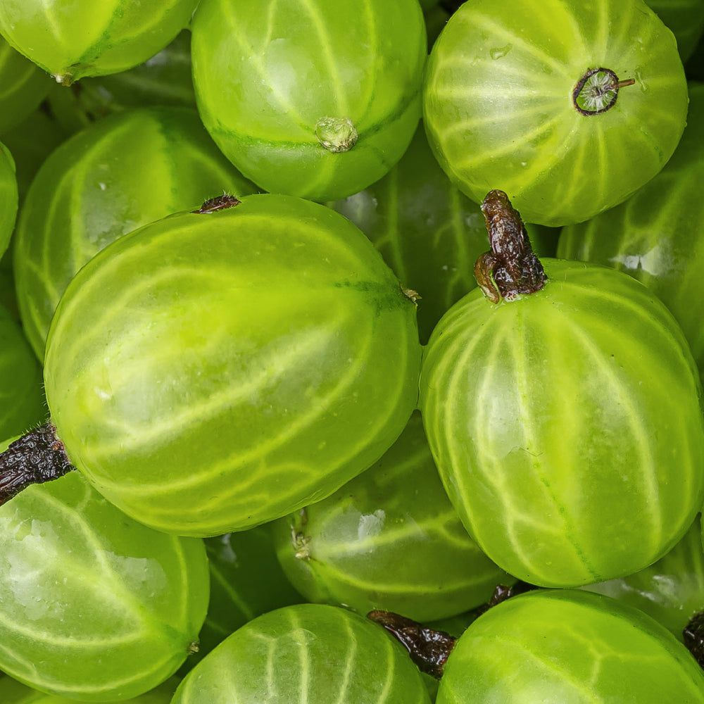Gooseberry is a small, round berry that can vary in color from green to yellow and red.
